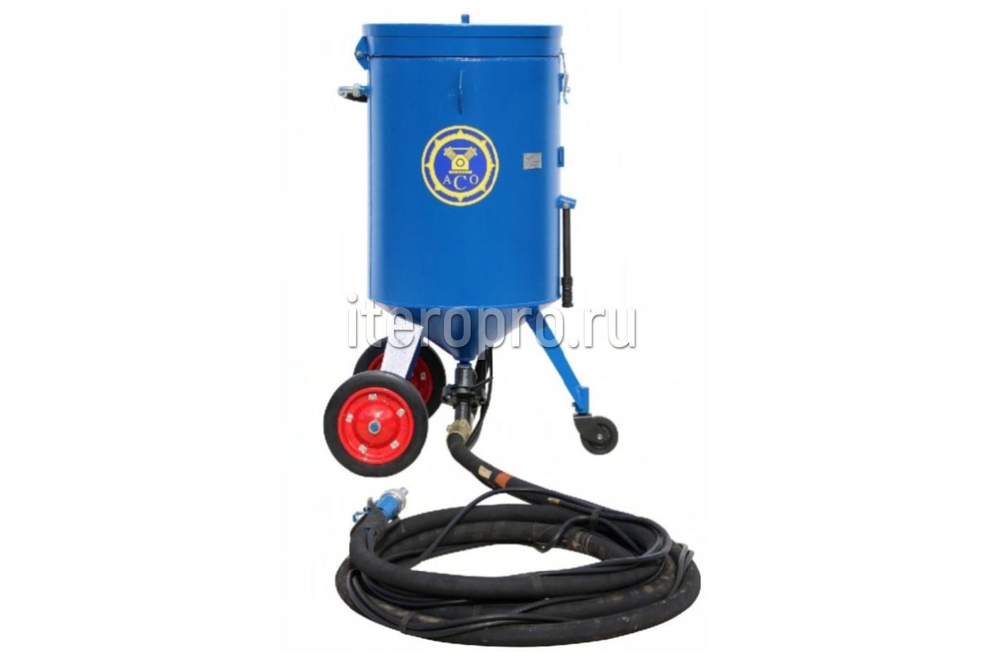Аппарат струйной очистки АСО200 состоит из ресивера, образующего рабочую камеру аппарата, загрузочного бункера с сеткой, дозатора абразива, напорного рукава и блока управления.
