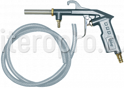 Пневмопистолет пескоструйный с шлангом. Предназначен для очистки поверхностей от грязи и ржавчины, а также снятия старых покрытий струей песка. Оснащен выносным шлангом, что позволяет использовать емкости с любым объемом абразивного вещества на значительном расстоянии от точки подключения.
